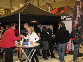 Maar goed..., enige tijd geleden ben ik toegetreden tot de gelederen van het Fast Food Racing Team als Paddock manager en Penningmeester, en ik heb onze enige Ducati rijder Jaap, beloofd hem te zullen helpen op deze beurs en ons Fast Food Racing Team te presenteren en te vertegenwoordigen. Mijn eerste officiële taak als member van het FFR team.