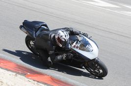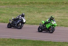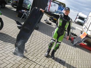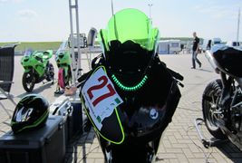 De eerste sessie meteen lekker volgas (bandenwarmers zijn inderdaad handig) het rechte stuk op na de pits, om vervolgens met zo'n beetje topsnelheid erachter komen dat de remmen gelukkig prima werken. Chicane induiken en gas maar weer. Dat ik de racer nog niet helemaal gewent was werd pijnlijk duidelijk naarmate de sessie vorderde. Ik was letterlijk aan het vechten voor een juiste houding en lijnen en dat kostte heel veel energie.