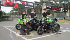De eerste sessie was het uiteraard de baan een beetje verkennen maar toch wel meteen "up tempo". We hadden ons huiswerk gedaan en redelijk wat onboard "You Tube" filmpjes vooraf thuis bekeken zodat we aardig wisten wat we konden verwachten. Het circuit van Zolder kenmerkt zich door de vele chicanes (maarliefst 3 stuks!!) en natuurlijk de “Sacramentsheuvel” waar je haast loskomt van het asfalt en meteen moet insturen naar links want de bocht moet wel gehaald worden, gaaaaf!! Het goed en hard aanremmen voor de chicanes bleek trouwens ook nog een hele klus, vooral de tweede waar je met hoge snelheid en behoorlijke hellingshoek op af komt, Jaap ging er de eerste ronde al bijna rechtdoor omdat zijn Brembo remmen ineens weinig gehoor meer gaven, leek wel of er lucht in de leidingen zat, hard doorremmen ging niet meer om de 1 of andere reden….
