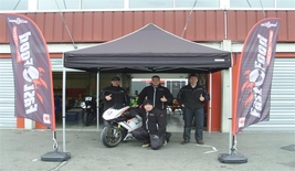 Snel de tenten opbouwen en de Duc klaar maken voor de eerste van drie trainingen die dag.