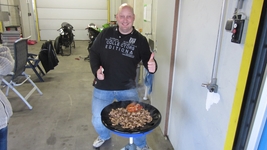 Aan het eind van de dag heeft onze paddockmanager Paul J weer heerlijk gekookt op de skottelbraai en hebben we onder het genot van een biertje het nieuwe PR van Paul gevierd .